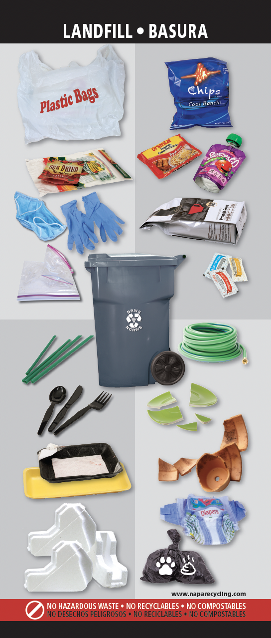 Remember to search the Napa Recycling Guide to find out what must go in the landfill cart/bin.
