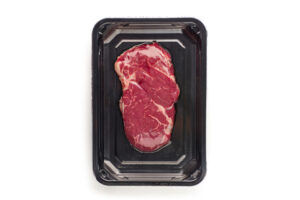 If your meat comes in film/soft/flexible plastic and a styrofoam base, please put both items into the landfill cart.